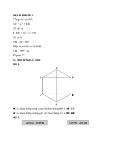 I. Phần trắc nghiệm Câu 1 Câu 2 Câu 3 Câu 4 Câu 5 Câu 6 D A D A A C Câu 1. Đáp án đúng là: D