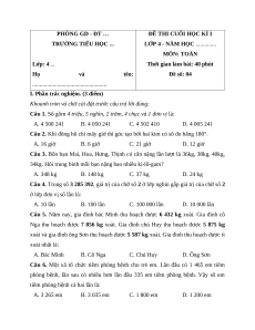 LỚP 4 - NĂM HỌC .............. MÔN: TOÁN Lớp: 4 ...
