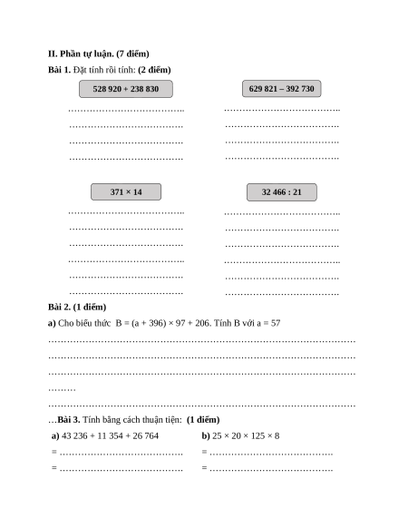 …Bài 3. Tính bằng cách thuận tiện: (1 điểm)
