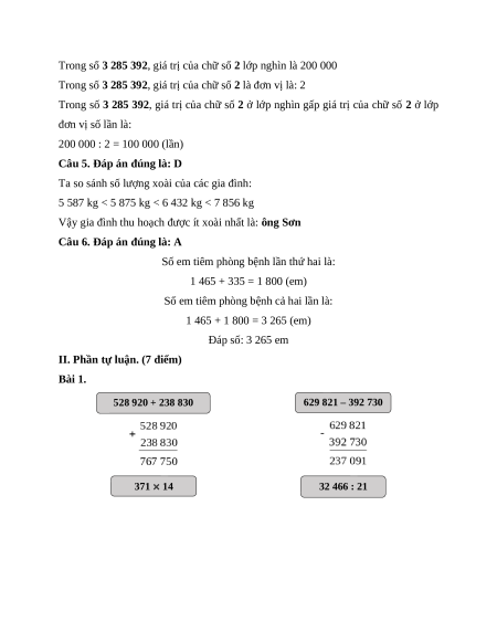 Câu 4. Trong số 3 285 392, giá trị của chữ số 2 ở lớp nghìn gấp giá trị của chữ số 2