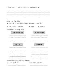 Bài 3. Đặt tính rồi tính: (1 điểm) 638 729 + 182 920 737 391 – 172 829