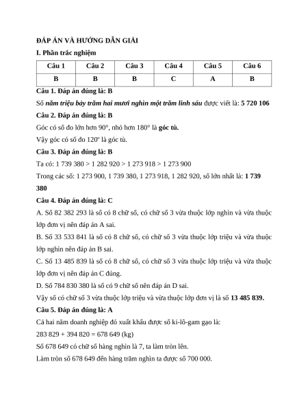 Câu 1. Số năm triệu bảy trăm hai mươi nghìn một trăm linh sáu được viết là: A. 5 702 106 B. 5 720 106 C. 5 720 160 D. 5 702 160