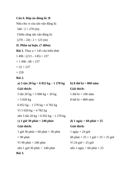 a) 5 tấn 20 kg ….. 6 052 kg – 1 270 kg