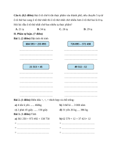 Câu 6. (0,5 điểm) Hai ô tô chở 6 tấn thực phẩm vào thành phố, nếu chuyển 5 tạ từ
