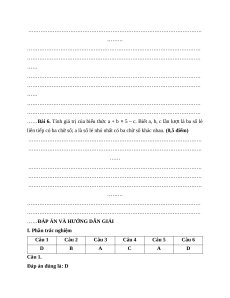 I. Phần trắc nghiệm Câu 1 Câu 2 Câu 3 Câu 4 Câu 5 Câu 6 D B A C A D Câu 1. Đáp án đúng là: D