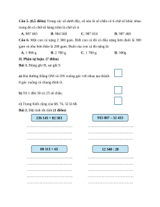 LỚP 4 - NĂM HỌC .............. MÔN: TOÁN Lớp: 4 ...