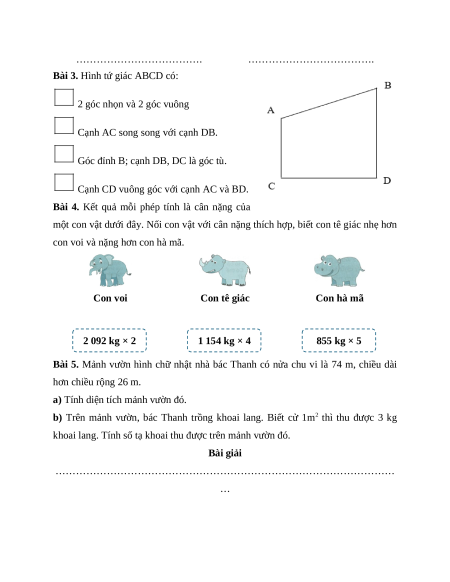 Bài 4. Kết quả mỗi phép tính là cân nặng của