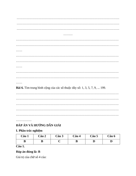 Bài 6. Tìm trung bình cộng của các số thuộc dãy số: 1, 3, 5, 7, 9, ... 199.