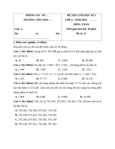 LỚP 4 - NĂM HỌC .............. MÔN: TOÁN Lớp: 4 ...