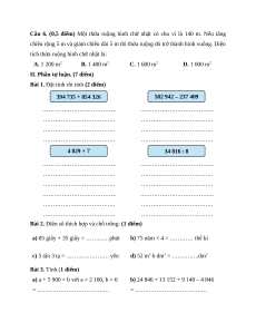 Câu 3. (0,5 điểm) Cho a = 4 235 , b = 5. Giá trị của biểu thức a + 1 200 × b là: A. 5 435 B. 27 175 C. 6 000 D. 10 235