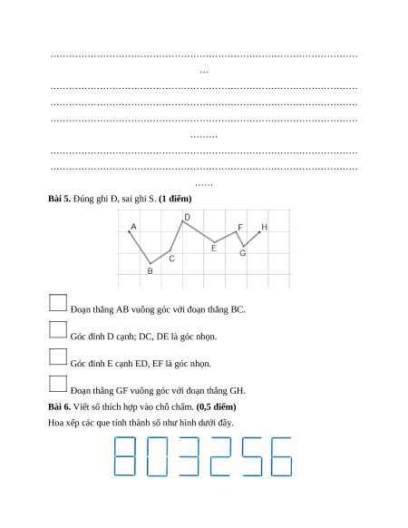Bài 6. Viết số thích hợp vào chỗ chấm. (0,5 điểm)