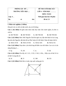 LỚP 4 - NĂM HỌC .............. MÔN: TOÁN Lớp: 4 ...