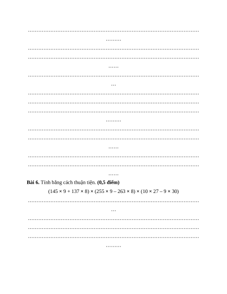 Bài 6. Tính bằng cách thuận tiện. (0,5 điểm)