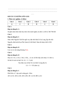 Câu 4. (0,5 điểm) Cho dãy số 2 121, 2 232, 2 343, 2 454,... Hiệu của số thứ 10 và số thứ 5 trong dãy là: A. 50 B. 55 C. 500 D. 555