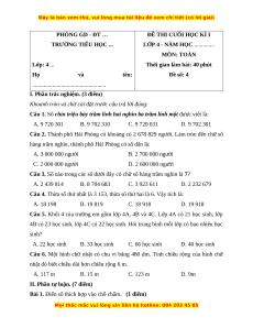 LỚP 4 - NĂM HỌC .............. MÔN: TOÁN Lớp: 4 ...
