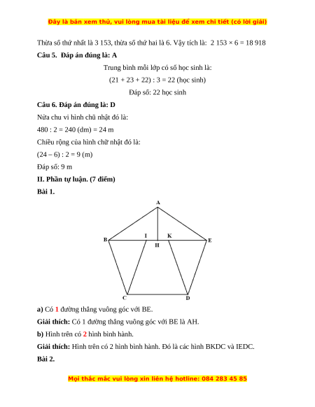 Câu 5. Khối 4 của trường em gồm lớp 4A, 4B và 4C. Lớp 4A có 21 học sinh, lớp