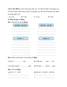 Câu 6. (0,5 điểm) Có hai tổ thu gom giấy vụn. Tổ một thu được 45 kg giấy vụn.