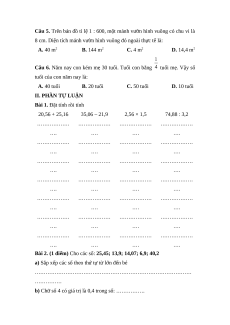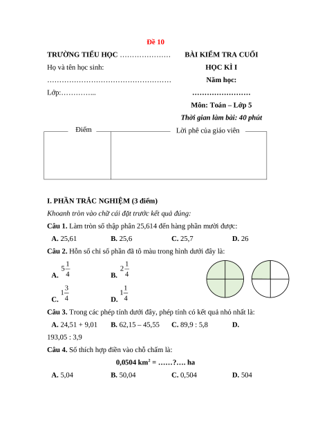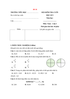 Đề thi cuối kì 1 Toán lớp 5 Cánh diều (Đề 10)