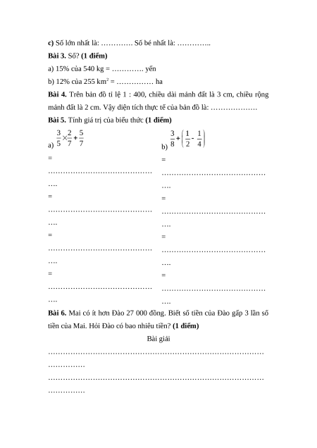 Bài 5. Tính giá trị của biểu thức (1 điểm) a) b) = =
