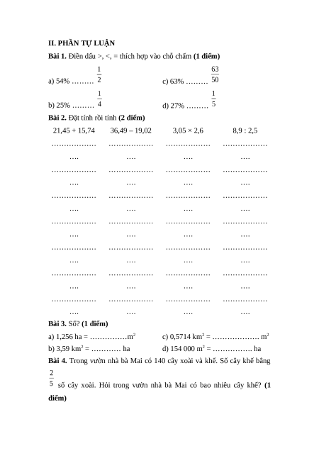 Bài 2. Đặt tính rồi tính (2 điểm) 21,45 + 15,74 36,49 – 19,02 3,05 × 2,6 8,9 : 2,5 ……………… ……………… ……………… ……………… …. …. …. …. ……………… ……………… ……………… ……………… …. …. …. …. ……………… ……………… ……………… ……………… …. …. …. …. ……………… ……………… ……………… ……………… …. …. …. …. ……………… ……………… ……………… ……………… …. …. …. …. ……………… ……………… ……………… ……………… …. …. …. …. ……………… ……………… ……………… ……………… …. …. …. ….