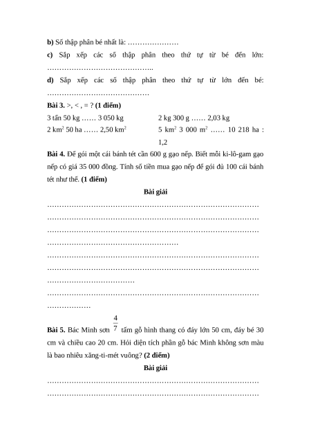Bài 2. Cho các số thập phân sau: (1 điểm)