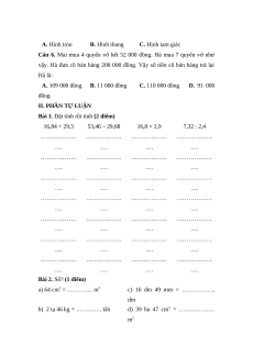 vậy. Hà đưa cô bán hàng 200 000 đồng. Vậy số tiền cô bán hàng trả lại Hà là: A. 109 000 đồng B. 11 000 đồng C. 110 000 đồng D. 91 000 đồng II. PHẦN TỰ LUẬN