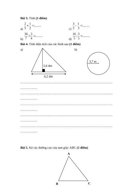 Bài 4. Tính diện tích của các hình sau (1 điểm) a) b) 3,7 m . 5,6 dm 6,2 dm