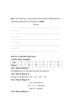 Bài 6. Anh Nam chạy 5 vòng quanh hồ nước hình tròn đường kính 90 m.
