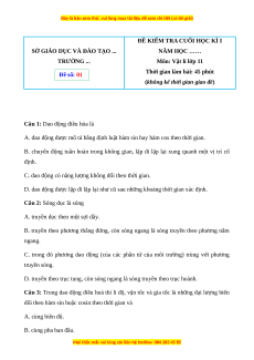 Môn: VẬT LÍ - LỚP 11 – BỘ CTST – THỜI GIAN LÀM BÀI: 45 PHÚT