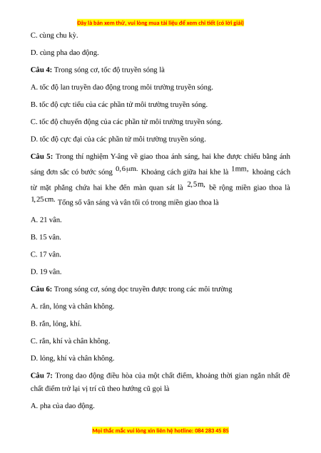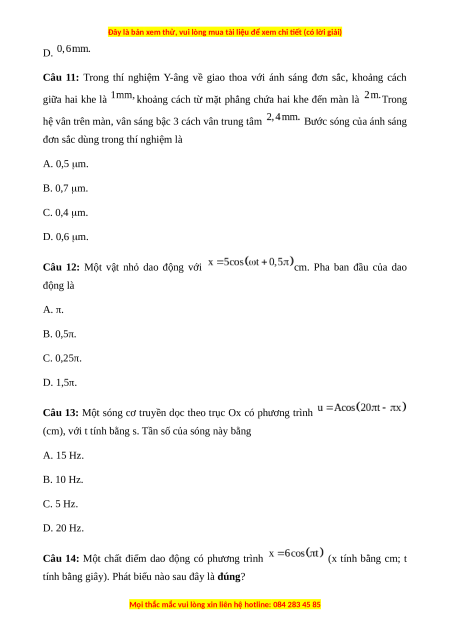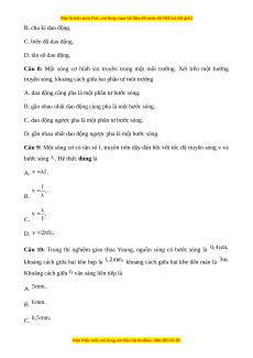 Câu 10: Trong thí nghiệm giao thoa Young, nguồn sóng có bước sóng là
