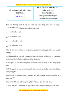 Câu 1: Phương trình li độ của một vật dao động điều hoà có dạng