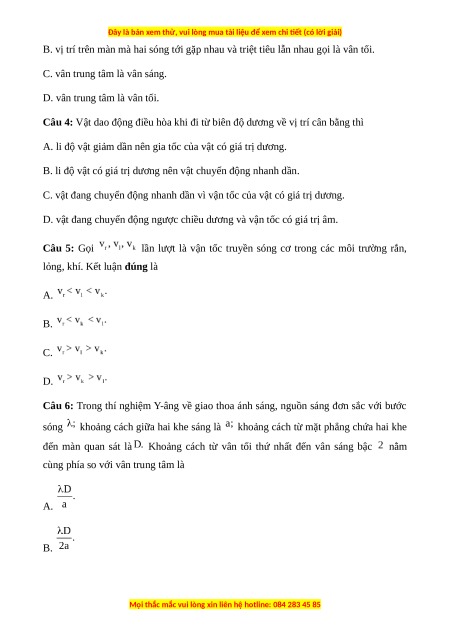 Câu 5: Gọi lần lượt là vận tốc truyền sóng cơ trong các môi trường rắn,