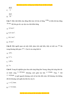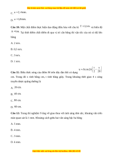 Câu 9: Trong thí nghiệm giao thoa ánh sáng bằng khe Young, dùng ánh sáng đơn sắc có bước sóng