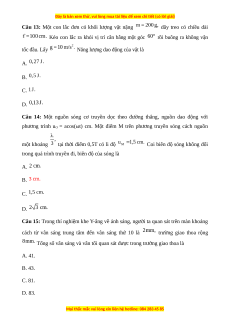 Câu 15: Trong thí nghiệm khe Y-âng về ánh sáng, người ta quan sát trên màn khoảng