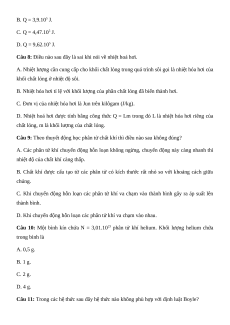 Câu 9: Theo thuyết động học phân tử chất khí thì điều nào sau không đúng?