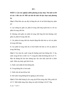 Câu 1: Phát biểu nào sau đây là đúng khi nói về mô hình động học phân tử?
