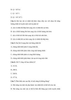 Câu 4: Khi hai vật có nhiệt độ khác nhau tiếp xúc với nhau thì năng