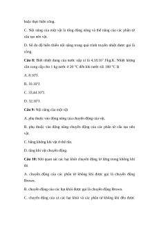 Câu 8: Biết nhiệt dung của nước xấp xỉ là 4,18.103 J/kg.K. Nhiệt lượng