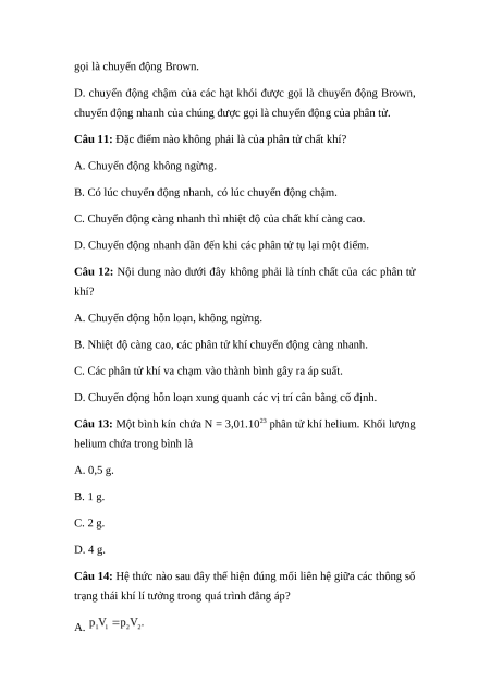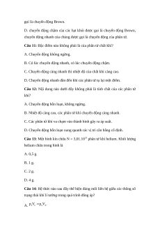 Câu 12: Nội dung nào dưới đây không phải là tính chất của các phân tử khí?