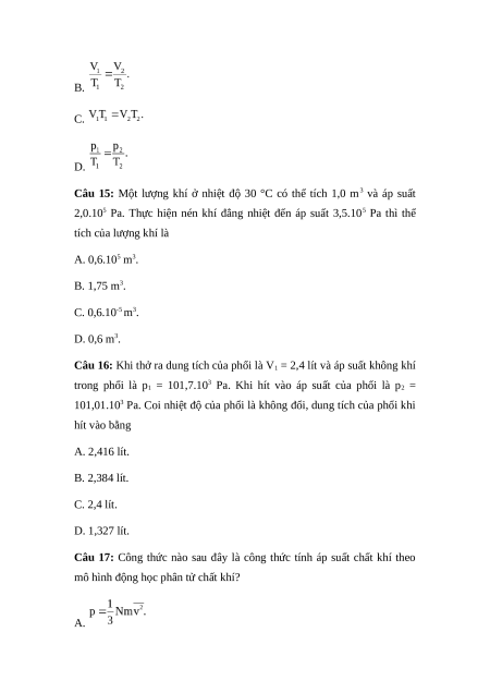 Câu 13: Một bình kín chứa N = 3,01.1023 phân tử khí helium. Khối lượng helium chứa trong bình là A. 0,5 g. B. 1 g. C. 2 g. D. 4 g.