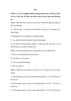 Câu 1: Phát biểu nào sau đây là sai khi nói về mô hình động học phân tử đối với chất khí?