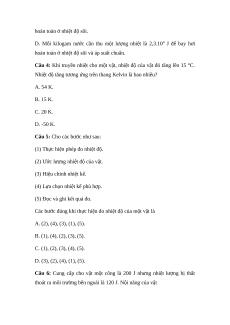 Câu 4: Khi truyền nhiệt cho một vật, nhiệt độ của vật đó tăng lên 15 °C.