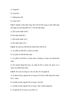 Câu 7: Người ta thực hiện công 100 J để nén khí trong xi lanh. Biết rằng