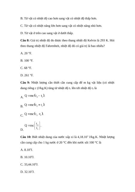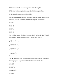 Câu 8: Giá trị nhiệt độ đo được theo thang nhiệt độ Kelvin là 293 K. Hỏi