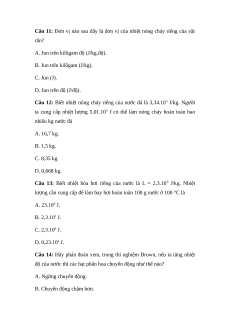 Câu 11: Đơn vị nào sau đây là đơn vị của nhiệt nóng chảy riêng của vật rắn?