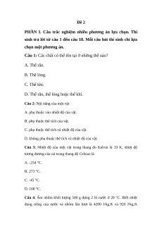 PHẦN I. Câu trắc nghiệm nhiều phương án lựa chọn. Thí