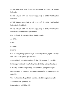 Câu 7: Nhiệt hóa hơi riêng của nước là 2,3.106 J/kg. Câu nào sau đây đúng?