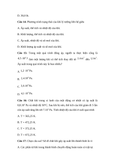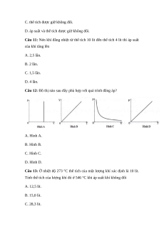 Câu 13: Ở nhiệt độ 273 °C thể tích của một lượng khí xác định là 10 lít.