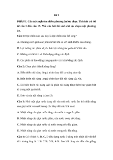 PHẦN I. Câu trắc nghiệm nhiều phương án lựa chọn. Thí sinh trả lời