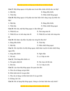 Câu 12 . Khi hoạt động, bộ phận nào của đèn Led giúp phân bố đều ánh sáng? A. Vỏ bóng B. Bảng mạch Led C. Đuôi đèn D. Vỏ bóng và đuôi đèn